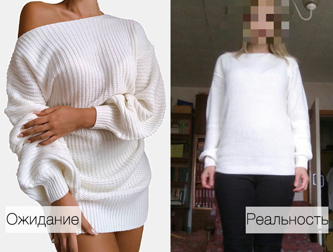 При покупке футболок, рубашек, кофт и других предметов одежды выше пояса крайне важно знать «свою» модель. Это, пожалуй, основное правило. Второе — следить за размерами и отзывами. Вот к чему может привести заказ без осмотра раздела с рецензиями.