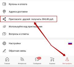 Перейти в «Мой профиль» и нажать на «Пригласите друзей получить…»