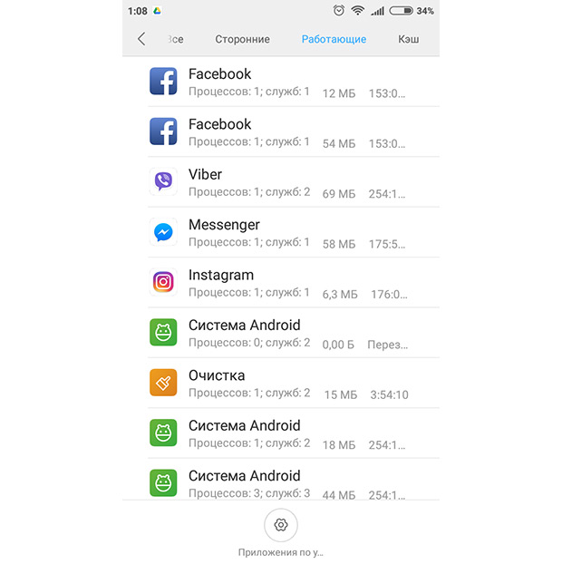 - В «Приложении» найдите подпункт «Запущенные». Вам откроется список с программами, работающими в текущий момент. Отключайте каждую, одновременно проверяя работу устройства.