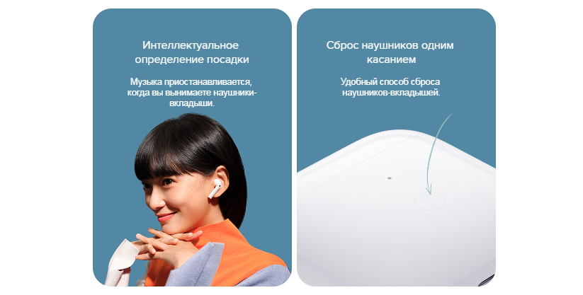 Управление кончиками пальцев. Двойное нажатие отвечает на звонок или включает следующий трек, тройное нажатие завершает/отклоняет звонок или активирует голосового помощника. Длинное нажатие ставит трек на паузу, а одновременное нажатие на два наушника активирует игровой режим.