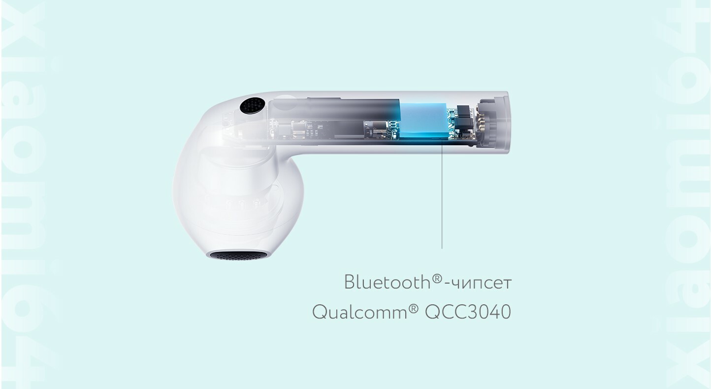 Redmi Buds 3 обеспечивают более быструю и стабильную передачу звука и впечатляющее качество звучания благодаря Bluetooth®-чипсету Qualcomm® QCC3040 и совершенно новой технологии Bluetooth® 5.2.