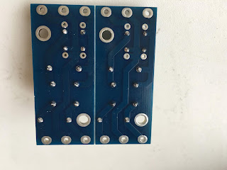 Первое фото из обзора Kirich(а), второе фото моё старое, с правильной (двухсторонней) версии БП. Конденсаторы, на выходе, ставил диаметром 13мм (простые Jamicon TK 35V/1000uF).