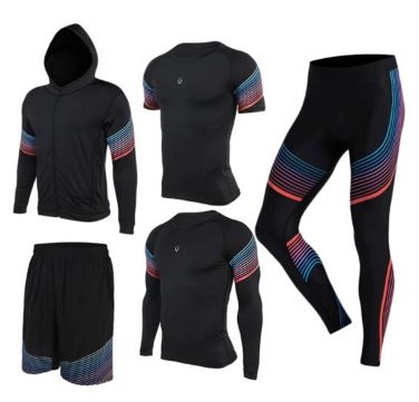 Тайтсы, шорты, лонгслив, куртка и футболка.