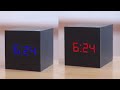 Перейдём к предпоследней модели электронных часов в нашей подборке, отличительная особенность которых заключается в покрытии корпуса с имитацией под дерево. Через призму полупрозрачной плёнки выглядывают цифры, определяющие текущее время. По умолчанию, устройство работает в постоянном режиме отображения времени, но при желании, можно изменить настройки, тогда дисплей будет включаться при хлопке, щелчке паьцами или же другом внешнем звуке. Яркость цифр также можно регулировать. У продавца часы доступны в двух вариантах — это либо кубик, либо удлинённый брусок.