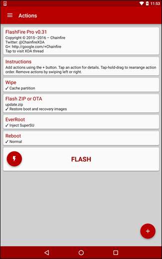 Это создаст экран, который может показаться немного утомительным для начинающих пользователей, но по сути это просто разбивка того, что FlashFire намеревается делать с файлом OTA. Каждый параметр можно настроить, если вы нажмете на него — например, если вы не хотите стирать раздел кеша, просто отмените выбор этого параметра. Вы также можете добавлять различные действия, но я бы не рекомендовал делать это прямо сейчас.