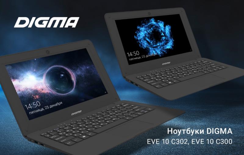 Новые ноутбуки DIGMA EVE 10 С300 и EVE 10 C302: компактные, лёгкие и с подарками!