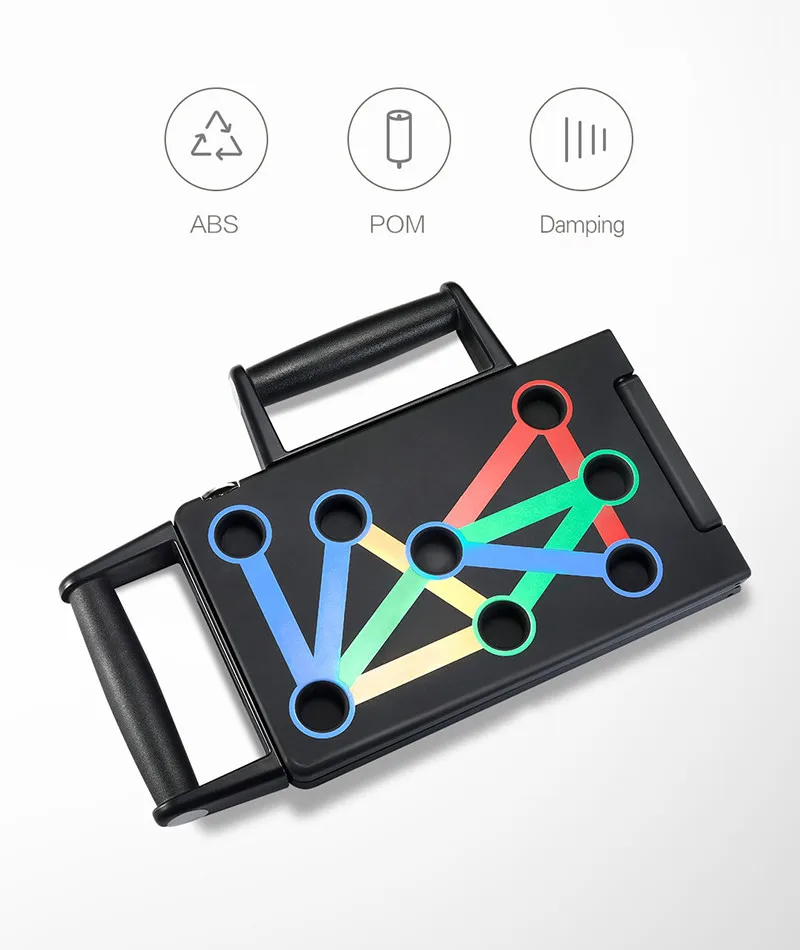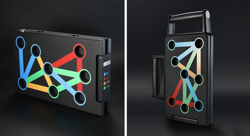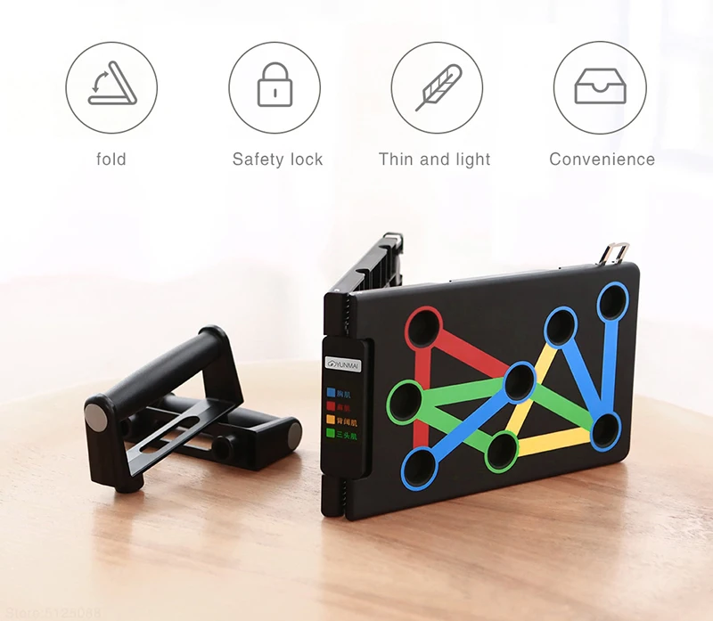 -Портативный, легко собирается и демонтируется-Складная конструкция значительно уменьшает площадь хранения и общий вес кронштейна-Нажимная Складная пластина кронштейна оснащена съемной ручкой для удобной переноски и тренировок. Пока есть плоская поверхность, кронштейн можно начать тренироваться.-После использования, он сложен и заблокирован, и кронштейн мгновенно превращается в компактный чемодан, который может храниться в любом уголке дома.-Различные цвета объединяются для тренировки различных частей тела: синие части тренируют грудь, зеленые части тренируют трицепсы, красные части снимают плечо, желтые части тренируют мышцы litissimus dorsi