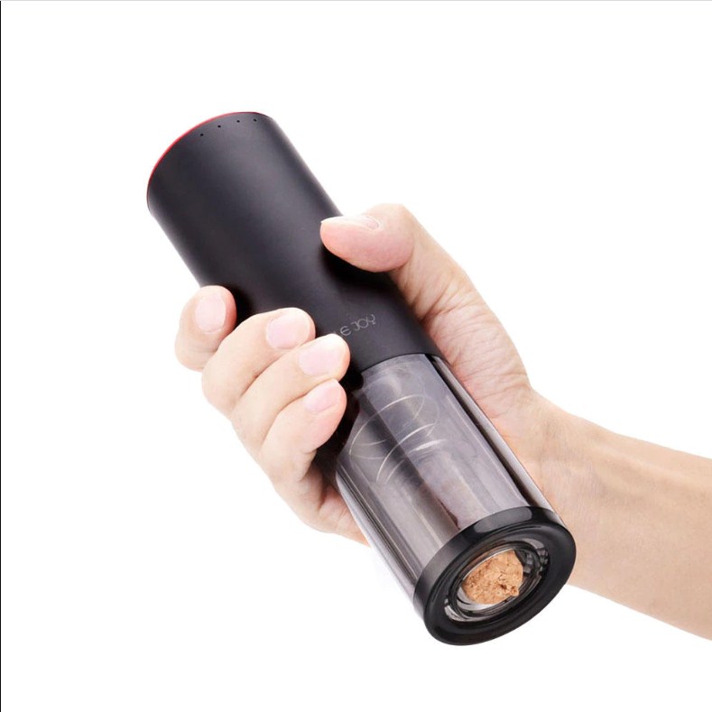 В комплекте с устройством идет нож для срезания этикетки. Потом оно надевается на горлышко и по нажатию одной кнопки быстро вытаскивает пробку, сообщая об этом сигналом и красным миганием. Одного заряда хватает на открытие 70 бутылок.