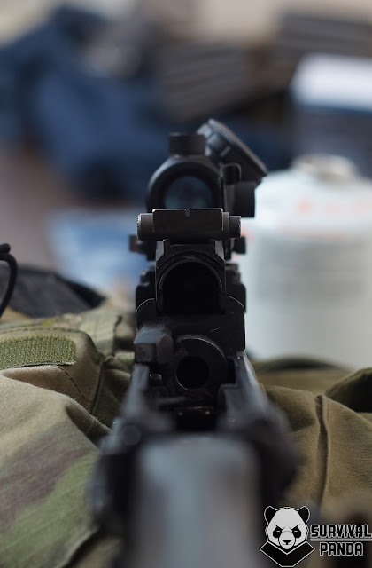 На всякий случай, для тех кто не в курсе — ультимак ставится вместо штатной газоотводной трубки. На верхней грани расположены слоты вивера на которые ставятся разнообразные прицелы, как правило — коллиматоры.