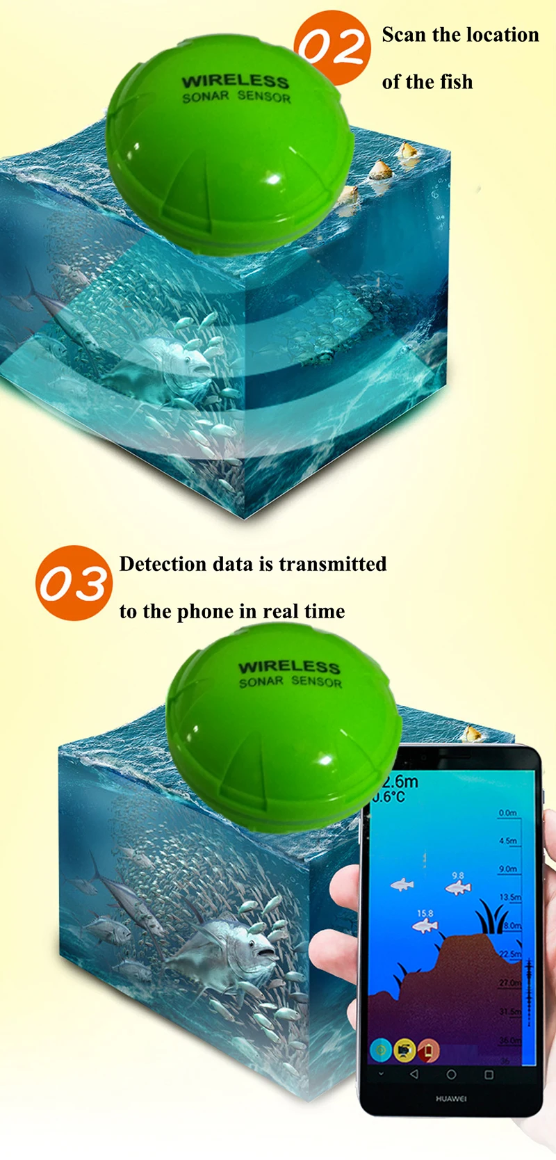 Особенности:— Технология идентификации гидролокатора:Работает в сочетании со смартфонами и планшетами, данные Обнаружения передаются на телефон в режиме реального времени, позволяет отображать водяные грядки, отмечать пятна, засорять воду и глубину, добавлять приманки, видов и видео в журнале поездок.-Бесплатное приложение на IOS или Android: «Помощник рыбы» синхронизируется через Bluetooth smart с устройством. Соединение Bluetooth обеспечивает расстояние между устройством и его пользователем до 164 футов/50 метров.-Сигнализация рыбы, фильтр шума, чувствительность 90 градусовДля того, чтобы пользователь мог кнопок select и гидролокатор частота 125 кГц, глубина до 164ft / 50 м, с перезаряжаемой 3,7 V литий-ионный аккумулятор, время использования составляет до 10-20 часов.-Легкий и удобный в использовании полезные: при весе всего 0,074 кг и 1,97 дюйма в диаметре, где у главного героя, миниатюрного устройство подходит для всех стандартных стержней и линий.— Широкое применение: Идеально подходит для Каяка, каноэ рыбалки, ледовой рыбалки, работает как в соленой воде, так и в пресной воде, эффективно обнаруживает рыбу и структуры на прудах, озерах, ручьях и реках.Параметры:1.