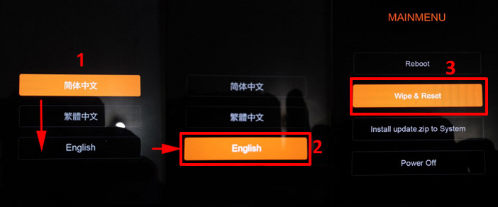 3. Удерживаете две кнопки пока не появится сообщение: « CSC Mode. Long press POWER to restart system «