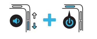 2. Зажать и удерживать кнопку « Громкость Вниз» +»Громкость Вверх» + «ВКЛ/ВЫКЛ »
