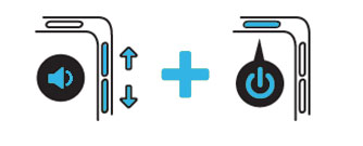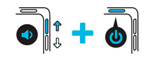- Нажмите и удерживайте одновременно клавишу уменьшения громкости (-) и клавишу включения/выключения.