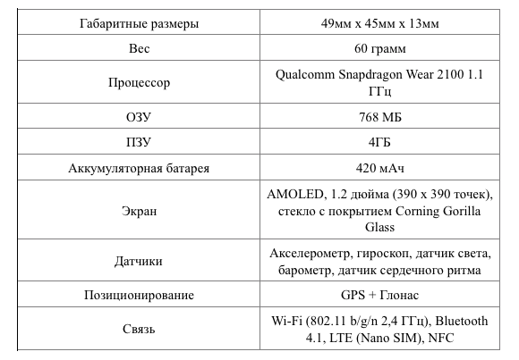 | Чипсет | Qualcomm Snapdragon Wear 2100 |