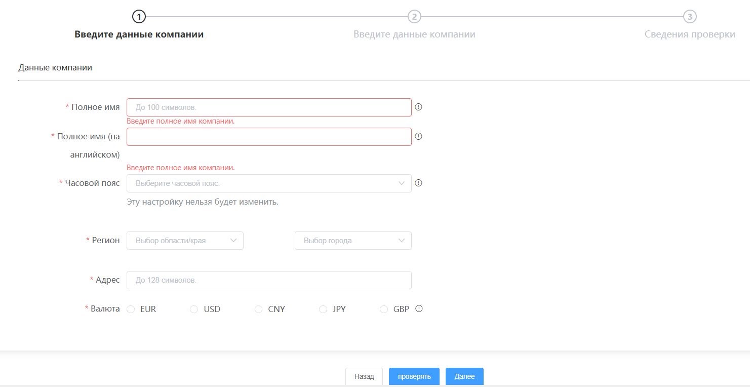 Чтобы получить доступ к кабинету, нужно зарегистрироваться. Это можно сделать по почтовому адресу и телефону. Система попросит ввести основные данные о компании: название, контактные данные, сферу деятельности.