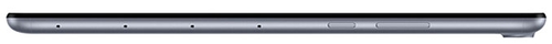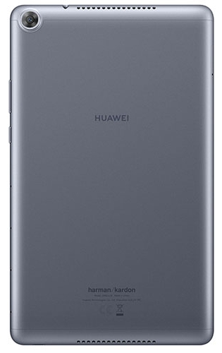 Планшет продается только в сером цвете, рамки экрана при этом черные. Крышка сделана из металла, благодаря чему девайс и получился таким легким – 310 г. Посередине задней панели – небольшой логотип бренда, чуть ниже – упоминание о компании Harman/Kardon. В верхнем левом углу находится глазок основной камеры, который заметно возвышается над остальной поверхностью. Кроме того, в глаза бросаются решетки динамиков на верхней и нижних гранях планшета.