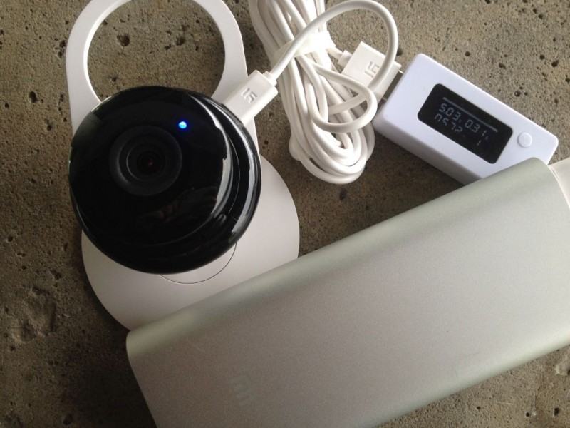 В данной камере нет встроенного аккумулятора, но желание что-нибудь измерить есть. Поэтому решил проверить сколько камера кушает в подключенном режиме и при записи видео. Для этого достал с полки Xiaomi 16000mah и измерительный прибор. Народный USB-тестер показал зачение 0.3А Изредка оно колебалось от 0.25А до 0.34А Кстати, первоначально при включении индикатор на камере горит оранжевым цветом. Как только соединилась камера с телефоном яркий диод меняется на голубой.
