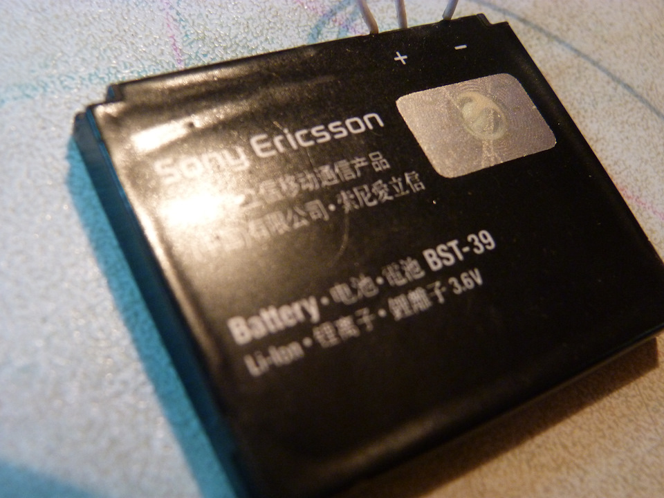 Аккумулятор от старого мобильника, думаю у каждого валяется дома или в гараже