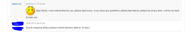 Как правило, обычно все нормальные продавцы откликаются в течение 1-2 дней и с радостью продляют срок защиты вашей посылки, так как в случае недопоставки и объявления (открытия) спора его магазин может быть легко закрыт, в чем я уже сам убедился, получив слезное письмо от такого продавца. Срок продления можете выбрать 20 — 30 дней, при желании эти сроки легко продляются.