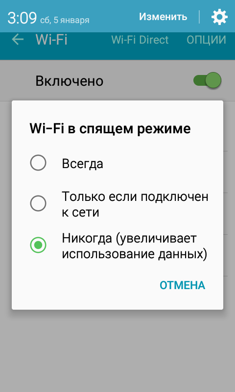 Если на вашей системе Андроид спящий режим по-прежнему отключает вай-фай модуль, то можно воспользоваться другими способами.