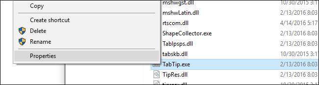 Щелкните правой кнопкой мыши файл «TabTip.exe» и выберите «Свойства».