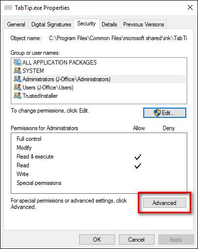 Нажимайте «ОК» в каждом окне, пока не вернетесь в папку, в которой мы нашли файл TabTip.exe (вам нужно все «ОК» и выйти из окон свойств, чтобы изменение владельца вступило в силу).