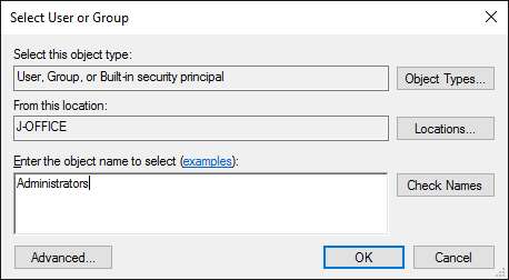 В поле «Выберите пользователя или группу» найдите поле «Введите имя объекта для выбора» и введите «Администраторы», как показано ниже. Щелкните ОК.