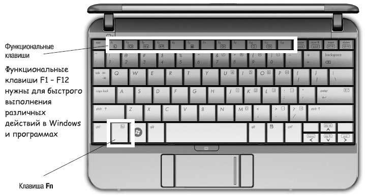 Для отключения экрана можно пользоваться и клавишей Fn, которая расположена между ALT и CTRL, внизу. Удерживая Fn, необходимо также нажать клавишу выключения, которая может быть привязана к одной из функциональных клавиш F1 — F12. При таком способе выключения нужно помнить, что ноутбук включится автоматически, если случайно задеть мышку или любую клавишу.