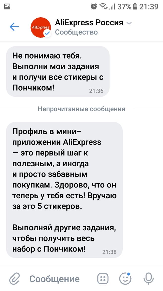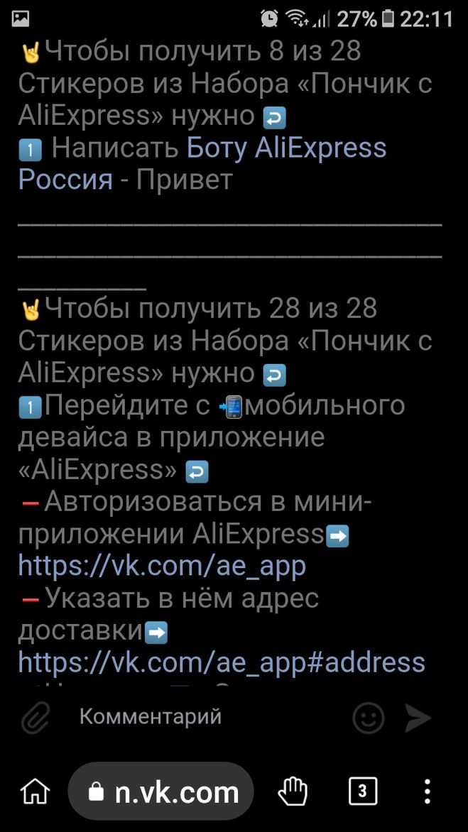 Как получить стикеры » Пончик с Алиэкспресс» от Aliexpress Вконтакте (VK)?