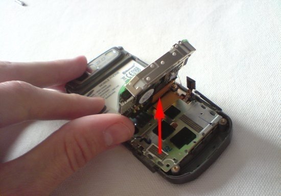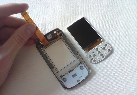 Поднимите дисплей от телефона, начиная с нижней части. Он держится при помощи двусторонней ленты, поэтому Вы должны отклеить его медленно, но с небольшим усилием.