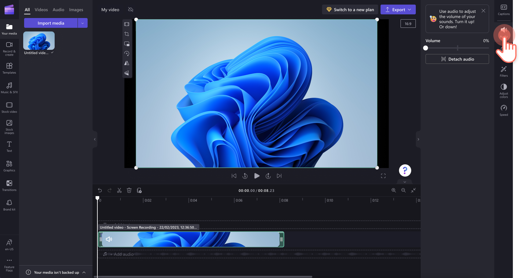 - На вкладке «Ваши медиа» перетащите голосовое сопровождение на базе ИИ на шкалу времени.