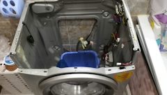 Хомут, который прикреплен к шлангу подачи воды (в некоторых моделях), также убирается, сам шланг снимается с патрубка, после уплотнительная резина люка заворачивается вовнутрь барабана. Производится частичная разборка машины со снятием передней панели, а также вообще всей передней стенки стиралки. Для этого следует выкрутить винты, удерживающие ее, и в некоторых моделях есть пластиковые защелки, удерживающие панель управления, их тоже следует отжать, и убрать панель управления.
