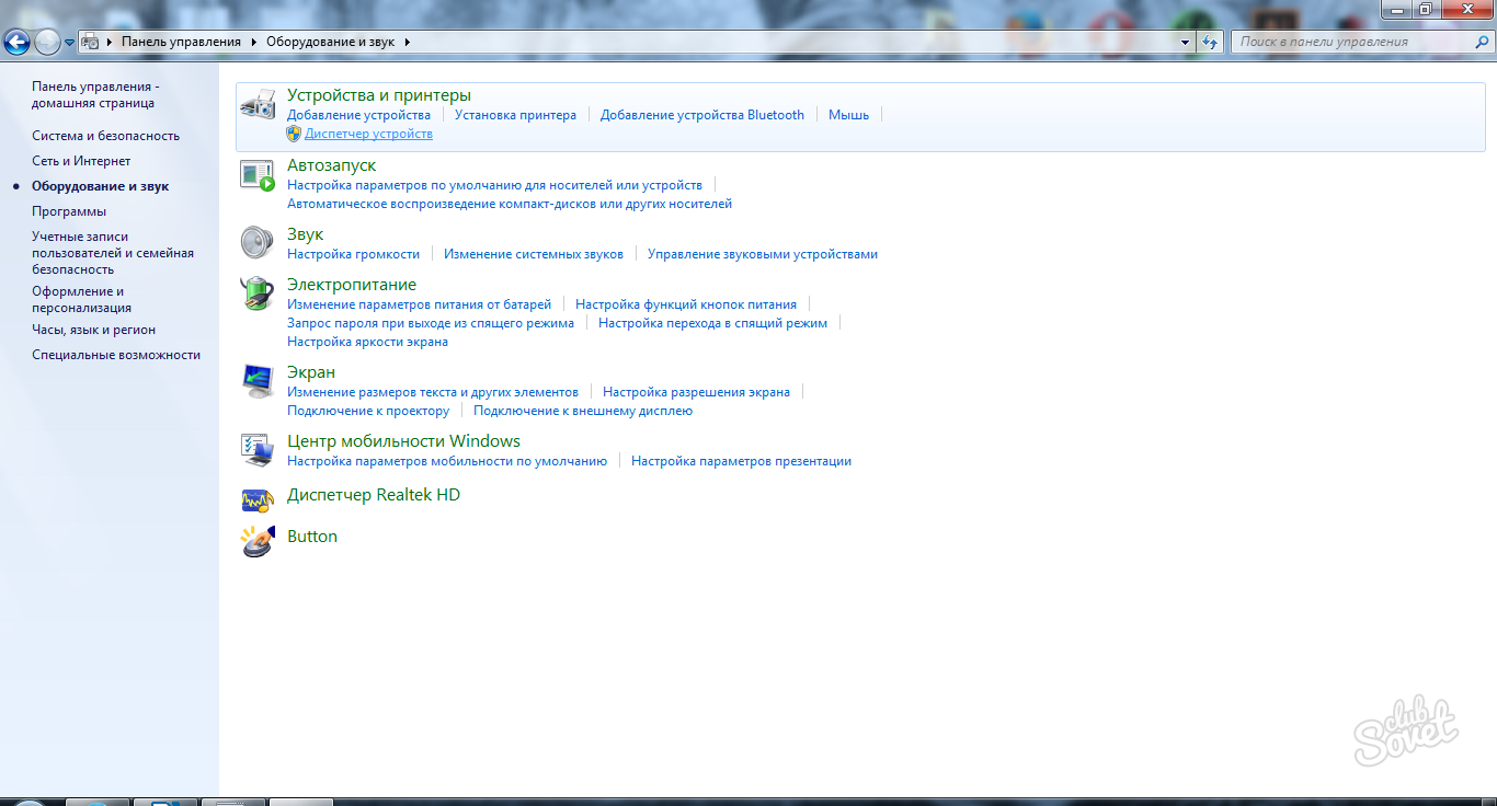 Узнать это несложно, переходим в «Панель управления». Далее здесь открываем «Оборудование и звук», необходим раздел «Устройства и принтеры», переходим в «Диспетчер устройств».