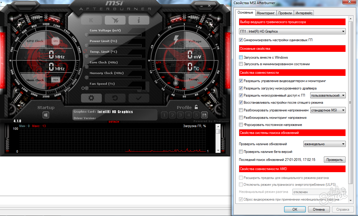При изменении параметров работы видеокарты соблюдайте осторожность. Слишком высокая нагрузка может вывести ее из строя. Обратите внимание, что увеличение производительности встроенной видеокарты происходит за счет оперативной памяти. Если ее недостаточно, работа компьютера замедлится. Старую дискретную карту почти невозможно «разогнать».