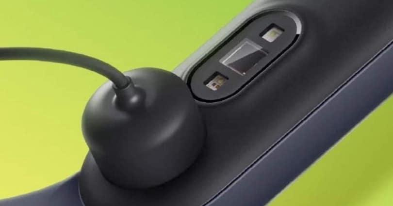 Зарядное устройство Mi Band 4 отличается от предыдущих браслетов Xiaomi. В этом случае вам также необходимо снять модуль с пластикового ремешка, но контакты подключения находятся сзади, а не снизу. Совместите их с зарядным устройством и прижмите клемму к зарядной базе, чтобы убедиться, что она правильно подключена.