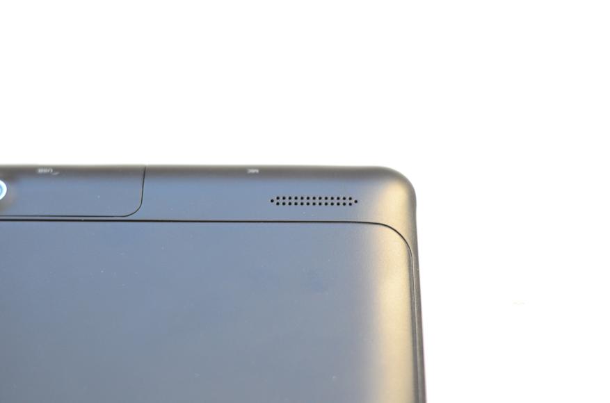 Динамики расположены с двух сторон на задней части планшета. Звук немного глуховат, но для планшета этого вполне достаточно. Микрофон находится на верхней части планшета.