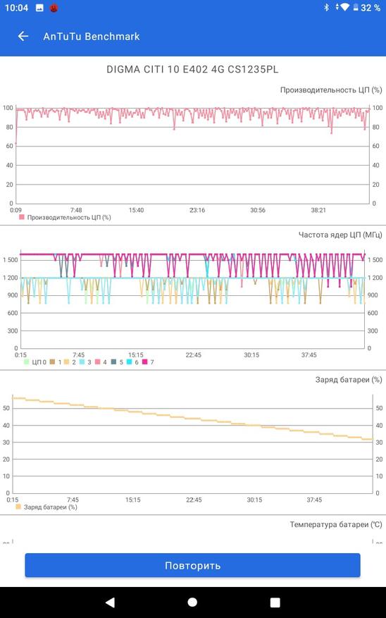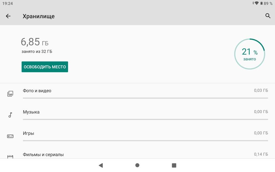 Планшет работает на базе процессора Spreadtrum SC9863 на 1.6ГГц, 2 гб оперативной памяти и 32 гб хранилище. Оперативной памяти хотелось бы больше, но не стоит забывать, что это все же бюджетный планшет. Для просмотра видео, игр и работы с приложениями этого вполне достаточно. После первых настроек и обновлений всех установленных приложений память будет заполнена на 21%, если оставшейся вам будет недостаточно можно расширить ее картой памяти.