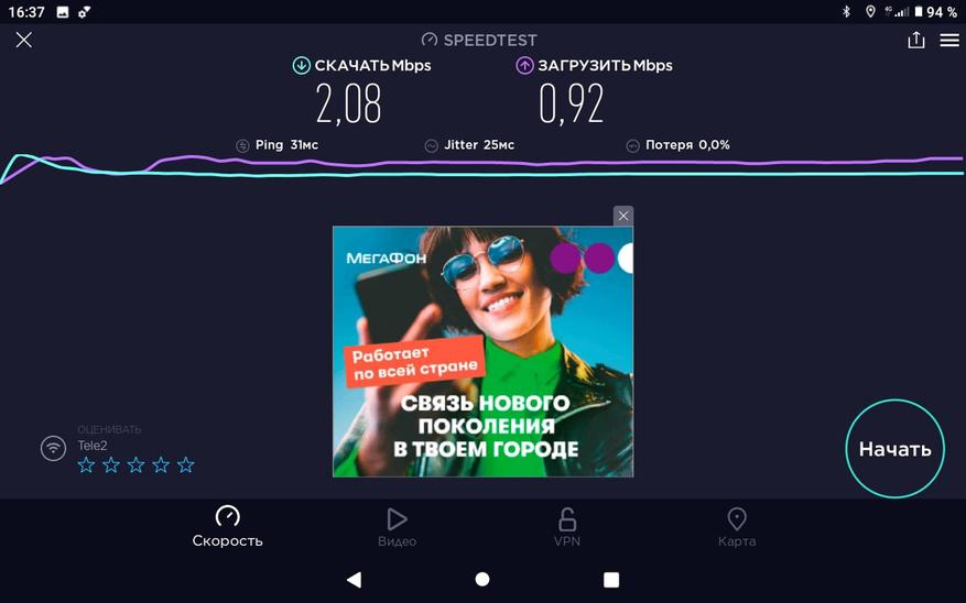 Скорость Интернет соединения по WiFi оказалась гораздо больше, чем при использовании сим карты.