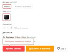 Кроме того, иногда дополнительно требуется выбрать, из какой страны вы хотите получит товар — Россия или Китай, а также определиться со способом доставки, если указанный продавцом вам не походит.
