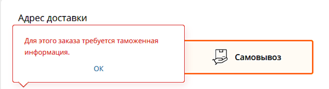 Обычно надпись «Для этого заказа требуется таможенная информация» появляется при оформлении заказа на Алиэкспресс, если выбрать доставку самовывозом. Сейчас на Алиэкспресс появилась возможность забирать заказы самовывозом из магазинов Пятерочка.