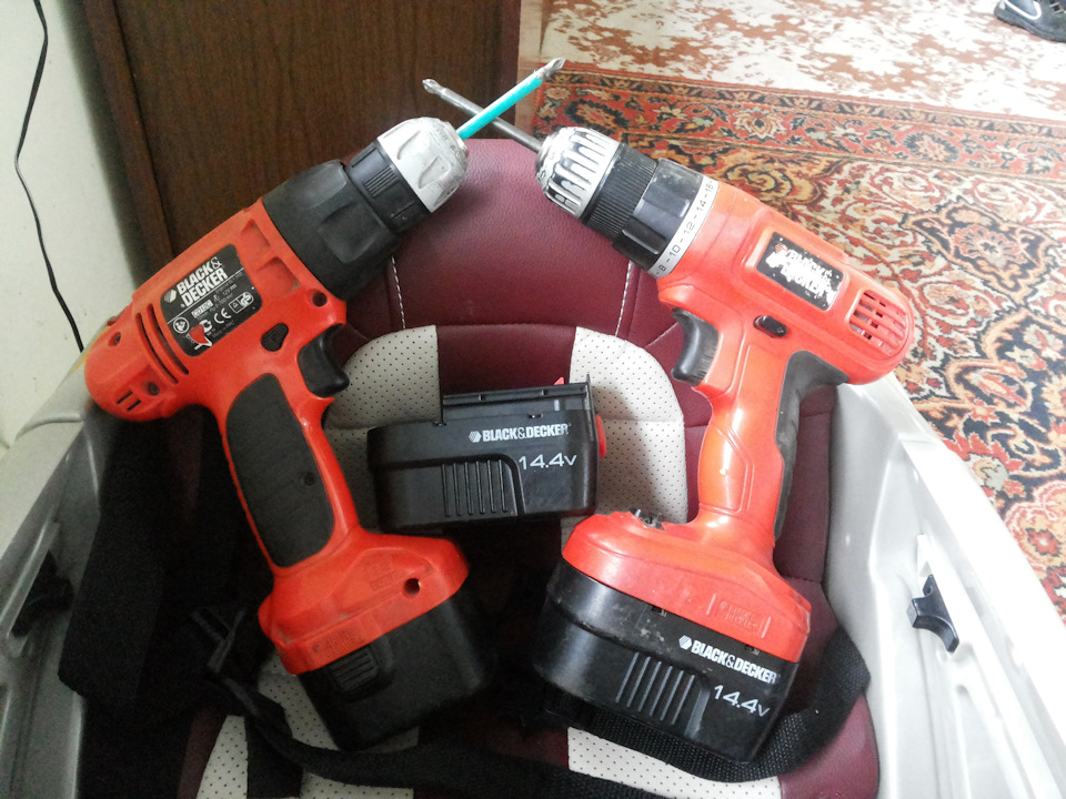 и второй тоже этой же фирмы но на 14.4 вольта который я купил на смену совсем перестающему держать заряд 12 вольтовому. И вот этот 12 вольтовый Шуруповертик валялся совсем разряженным более 3-4 лет, потому как пользовался 14.4 вольтовым с 2-мя блоками аккумуляторов,