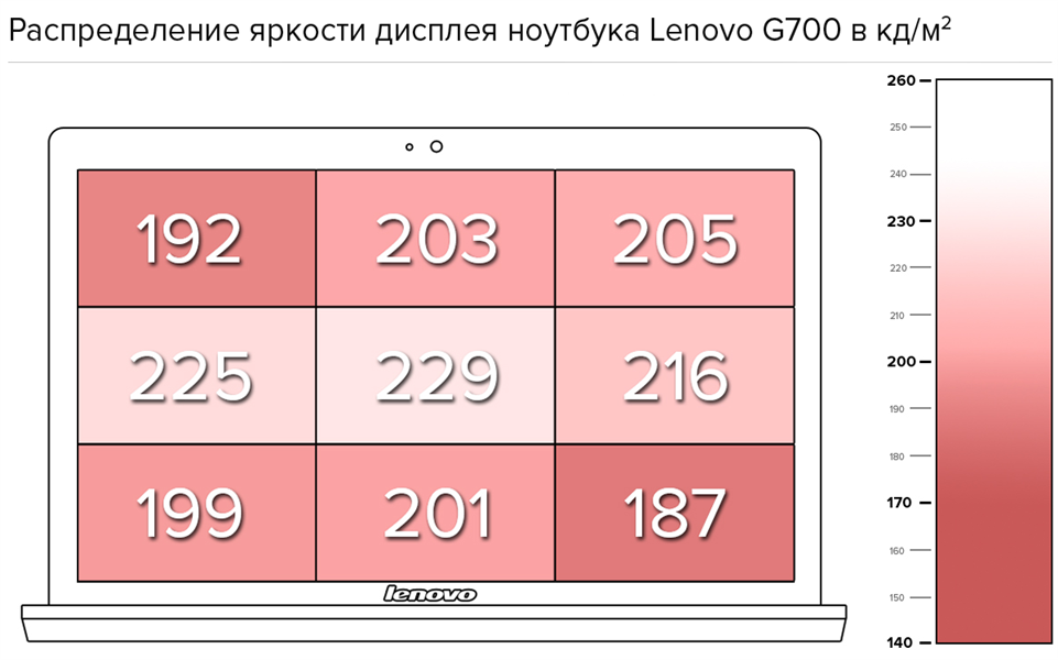 Было бы приятно видеть качественный дисплей в недорогом ноутбуке, но это не тот случай. У Lenovo G700 TN-матрица, скромное разрешение 1600×900 пикселей, что при диагонали в 17,3 дюйма дает ppi в 106 точек на дюйм. Хотя в плане четкости изображения этот вариант чуть лучше, чем 15-дюймовый ноутбук с разрешением в 1366×768 и ppi в 100 точек на дюйм. Глянцевый дисплей Lenovo G700 имеет довольно узкие углы обзора, особенно по вертикали, поэтому изображение нечеткое.