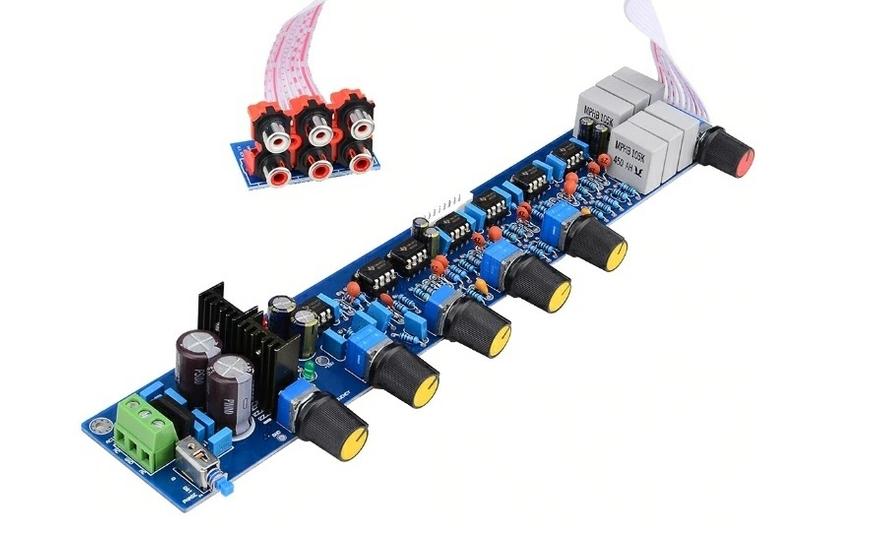 Хороший вариант для большой домашней системы 5.1. Предусилитель с регулировками по каналам, общей громкостью на базе NE5532. Питание двуполярное AC15V-0-AC15V.