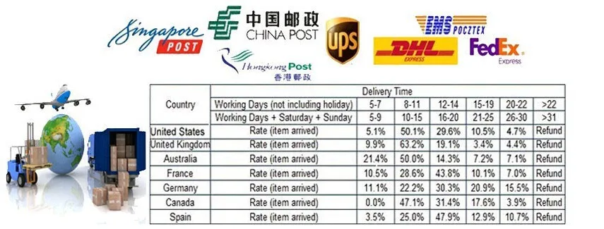 Мы будем отслеживать Отправка и возвращение к вам как можно скорее с ответом. Наша цель – удовлетворение клиентов! 7. Из-за наличия на складе и разницы во времени мы отправим ваш товар с нашего первого доступного склада для быстрой доставки. 8. Срок поставки: