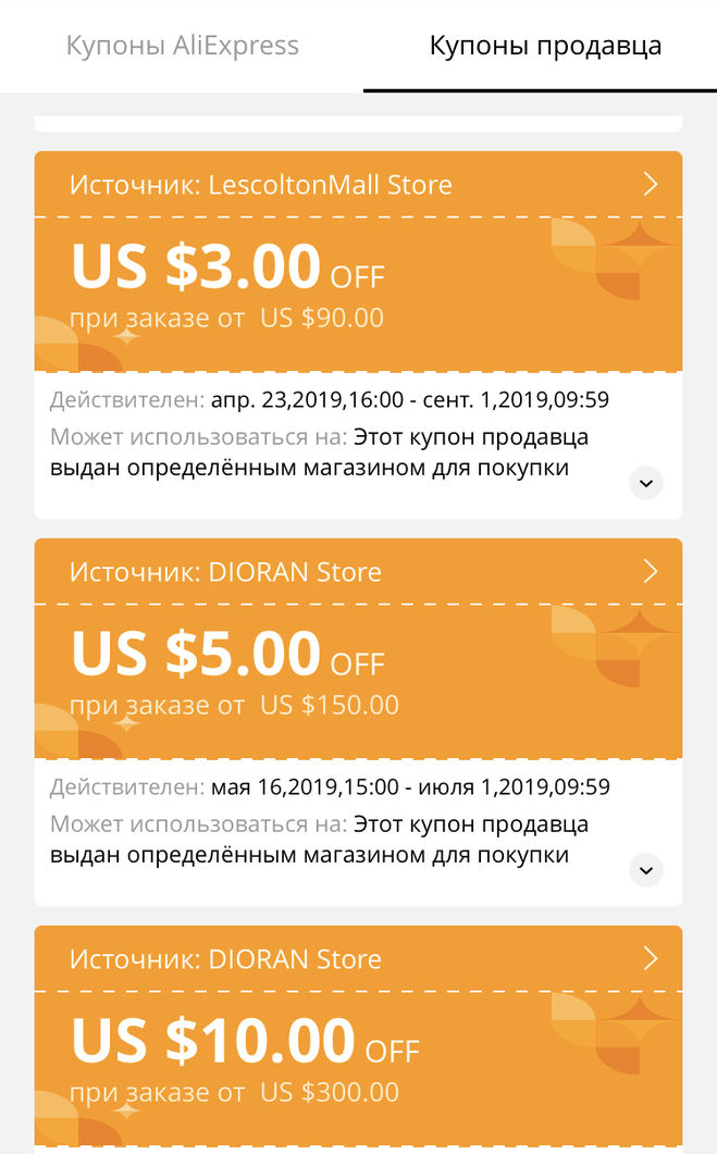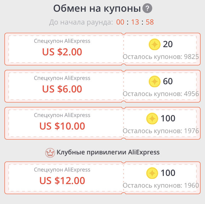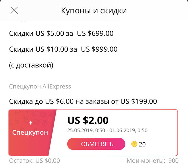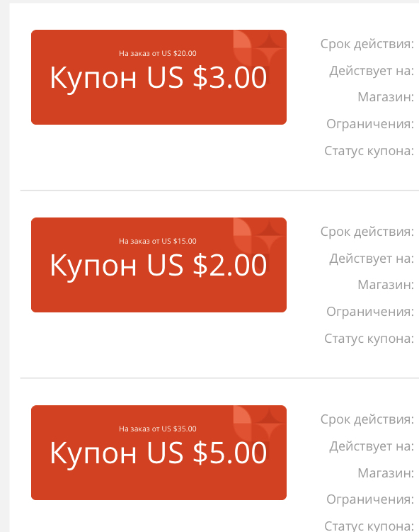 Другой тип — купоны от Алиэкспресс. Те, которые красные с белыми буквами.