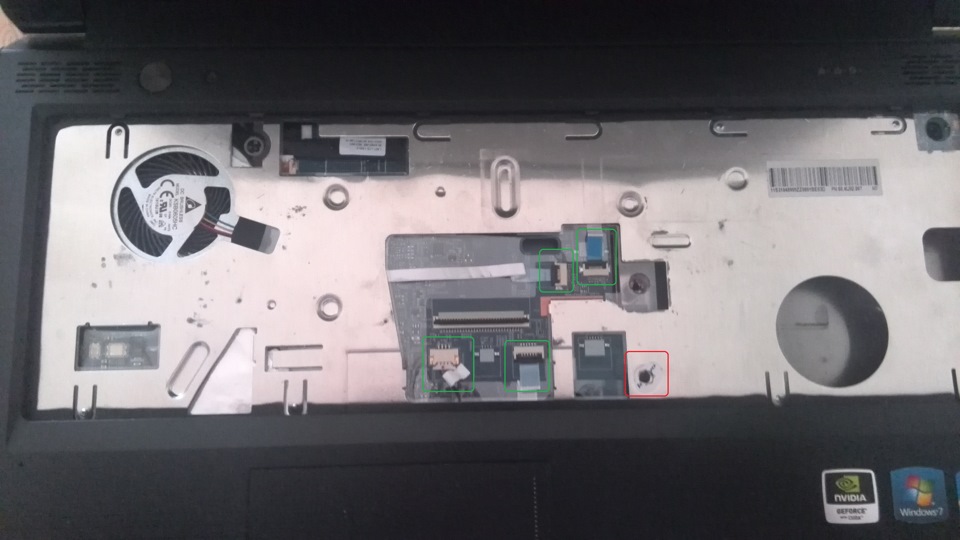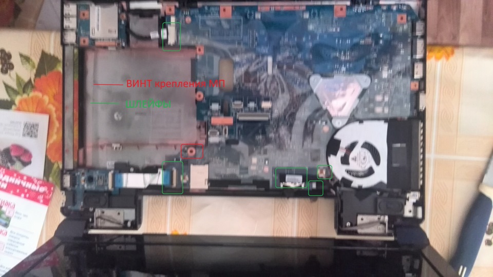 Крепление клавиатуры винтами отмечено на этом же фото. С обратной стороны клавиатура на защелках.