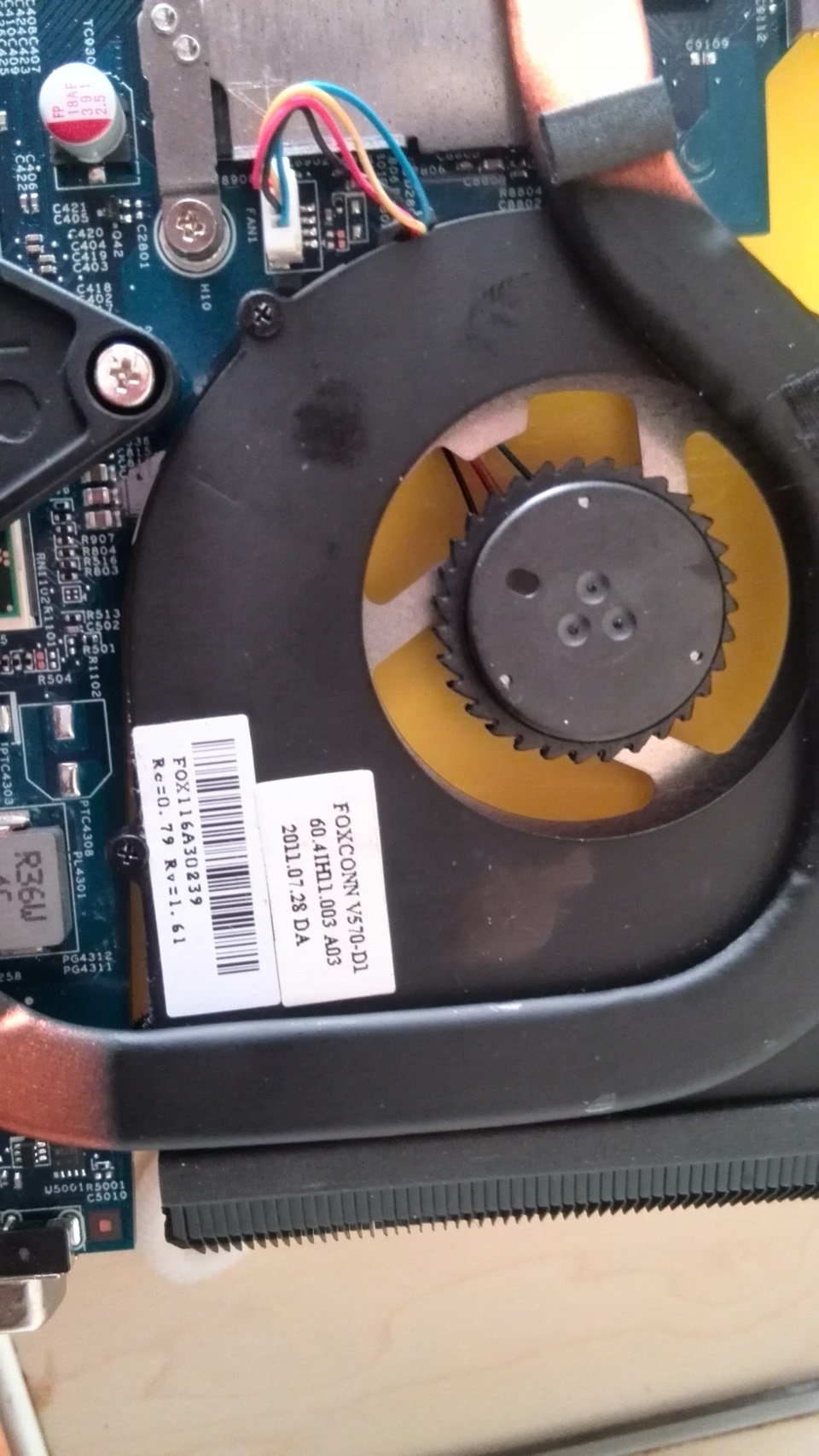 2. Изменить схему охлаждения, сделайте воздухозабор кулера прямо под ним, для этого придется удалить черную наклейку на крышке, которой заклеено окно над центром турбины кулера.