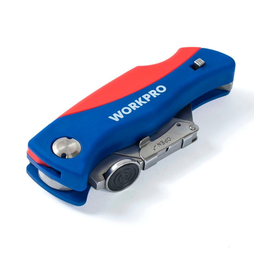 Нож обалденный по сочетанию цены конструктива удобства и крайне, крайне популярный в силу этого. Есть пятак для упора при резании, быстросменный механизм для смены лезвий и 5 запасных в комплекте. Лезвия, кстати, толще чем у привычных канцелярских ножей. Если что купить недорого можно в любом приличном хозмагазине. Пользуюсь сам, купил отцу.