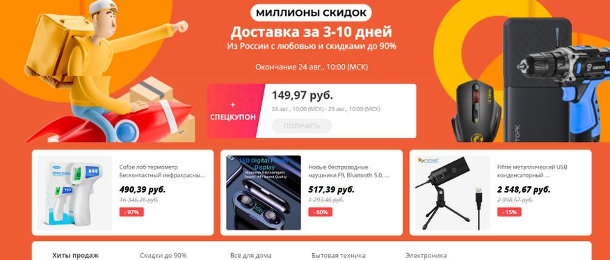 Главная страница распродажи миллионы скидок 2020 Aliexpress