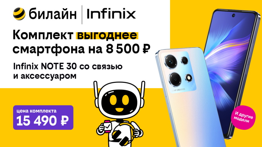 «Билайн» запустил новое предложение «3 в 1: Комплект выгоднее смартфона». Популярные модели брендов Infinix, Xiaomi и Tecno доступны для покупки в интернет-магазине и офисах продаж оператора в комплекте с аксессуарами и бонусными рублями, которые можно потратить на услуги связи. Выгода от покупки комплекта составит до 10 000 рублей — в итоге такой набор получается даже дешевле, чем просто покупка смартфона без акции.